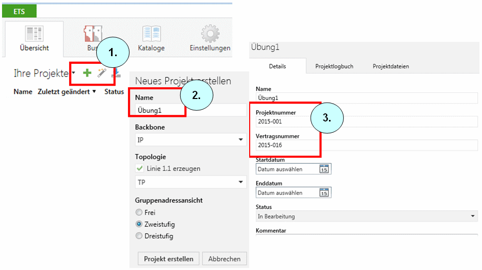 Öffnen Sie das Projekt und öffnen Sie unter “Arbeitsbereich” - “neues Fenster…” und legen eine neue “Gebäudestruktur” an.