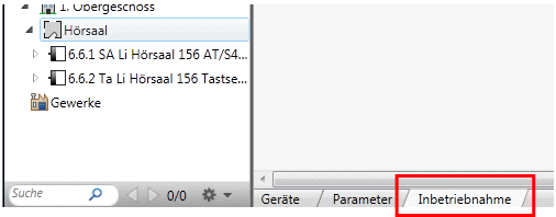 Wechseln Sie nun in der Gebäudeansicht zur Registerkarte „Inbetriebnahme“.